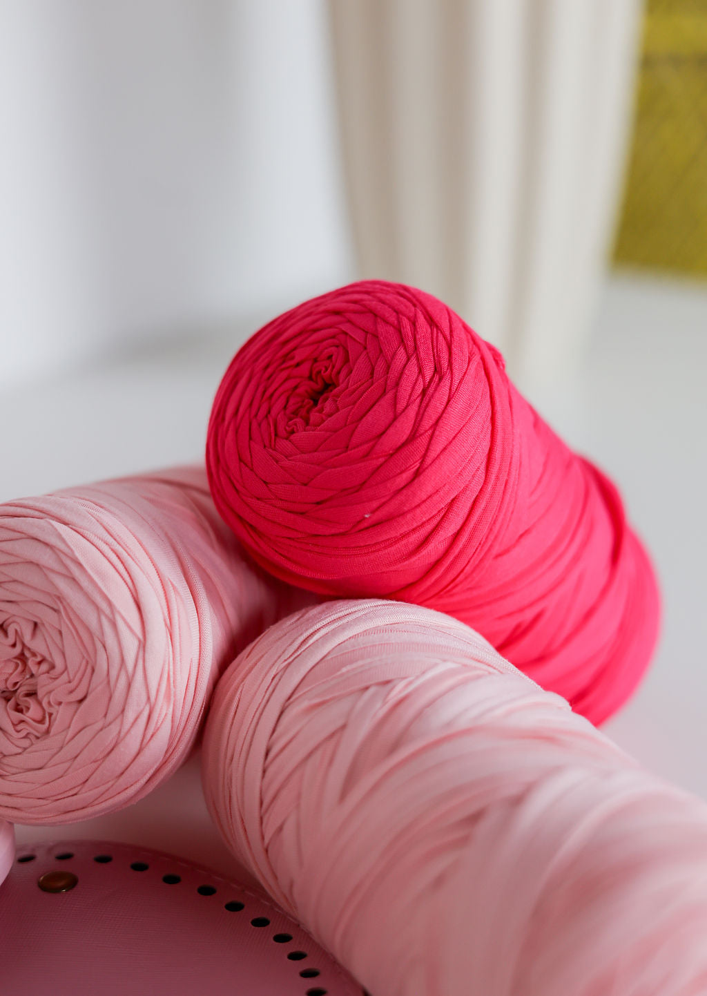 - Premium Recycled T-Shirt Yarn: Two delicious shades (Bubblegum & Blush) that are soft, stretchy, and eco-friendly.